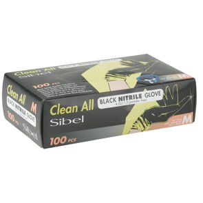 Zwarte poedervrije handschoenen vervaardigd uit 100% synthetisch nitril.